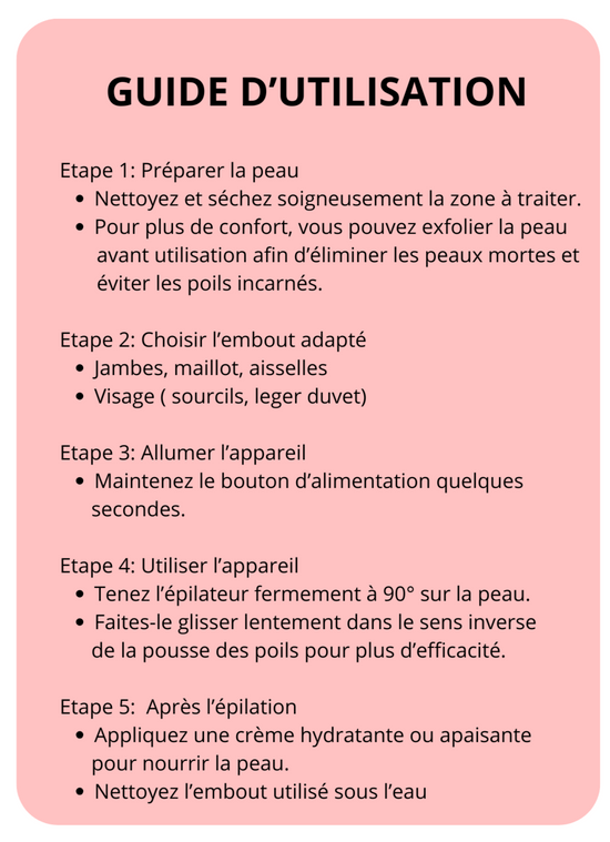 Pour des raisons d’hygiène, les épilateurs ne peuvent pas être retournés une fois utilisés. Retour possible sous conditions: glowness.b@gmail.com